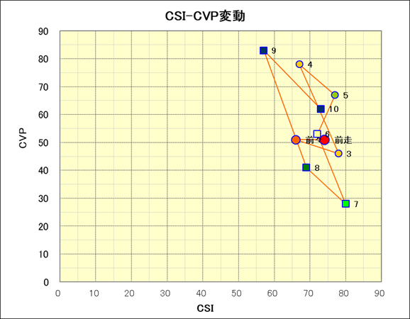 近走における4コーナーでの位置取りと上がり順位(頭数補正後) |