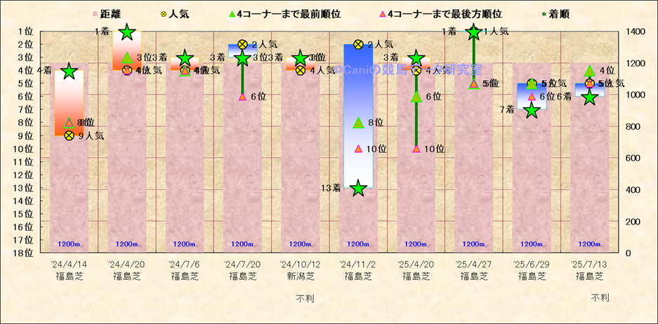 近10走 人気−着順-位置取りの推移 |