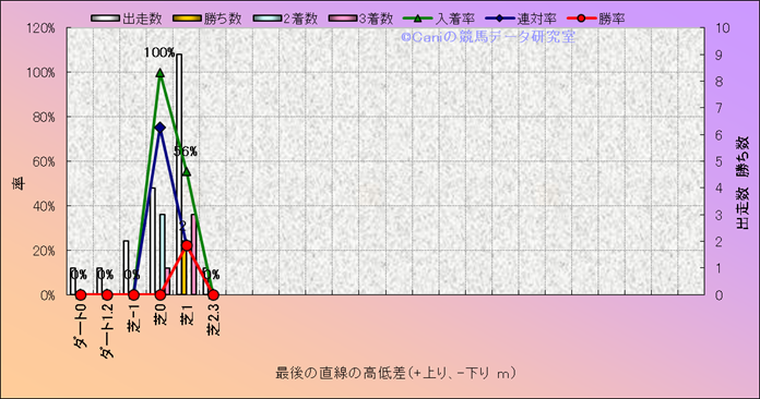 コース、最後の直線の高低差別成績(平地) |