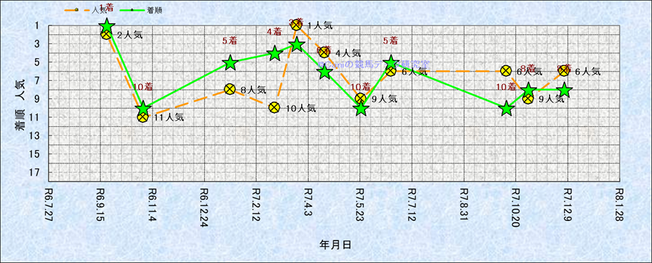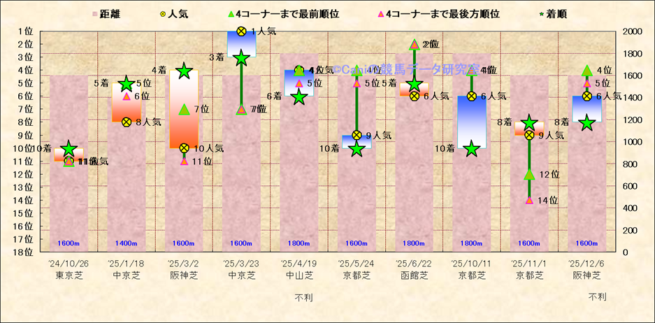 近10走 人気−着順-位置取りの推移 |