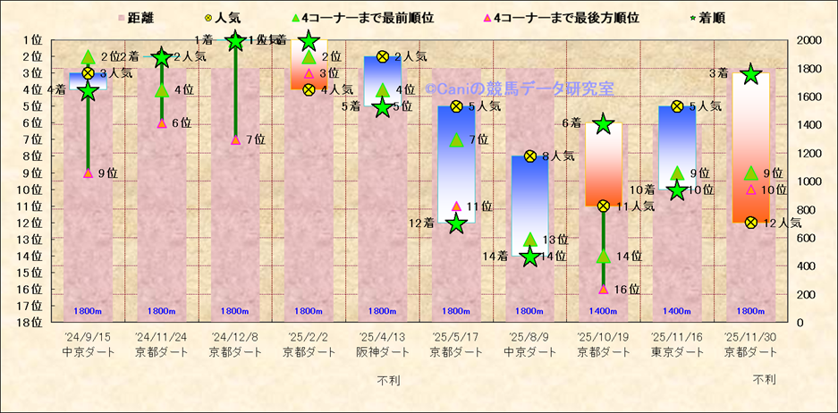 近10走 人気−着順-位置取りの推移 |