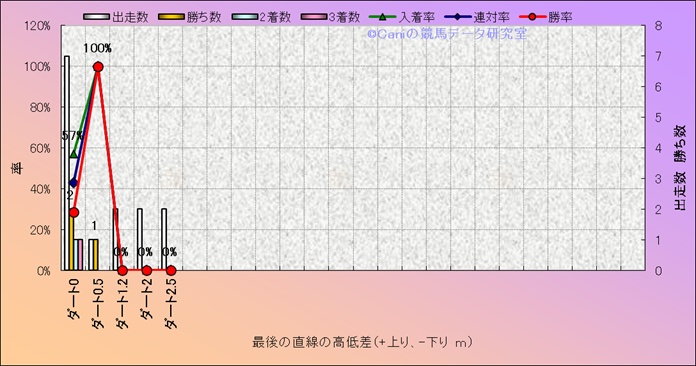 コース、最後の直線の高低差別成績(平地) |