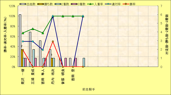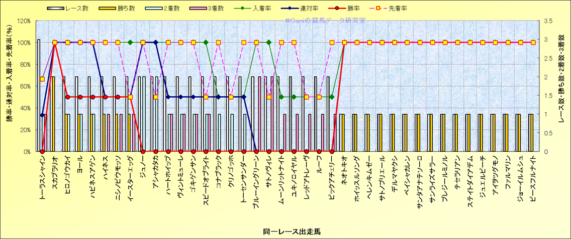 ライバル(相性)解析 同一レースに下記馬が出走した場合の成績とその馬に先着する先着率 |