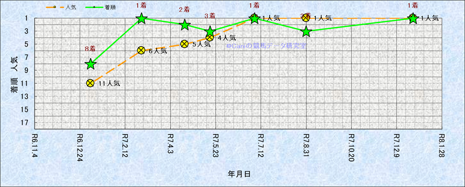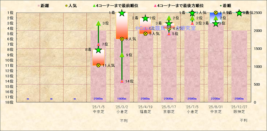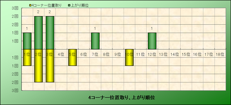 脚質解析 近20レースの4コーナーでの位置取りと上がり順位(頭数補正後) |