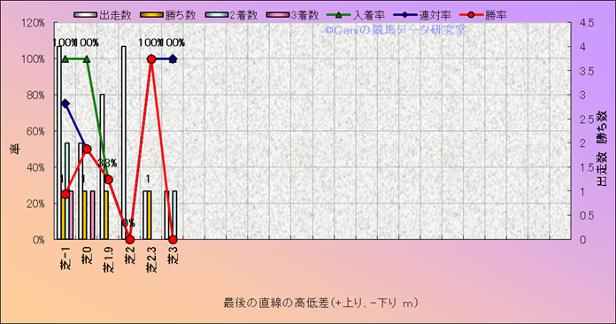 コース、最後の直線の高低差別成績(平地) |