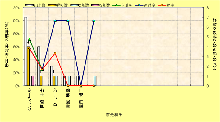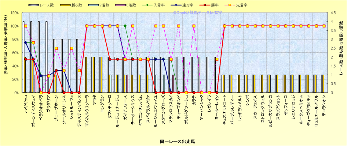 ライバル(相性)解析 同一レースに下記馬が出走した場合の成績とその馬に先着する先着率 |