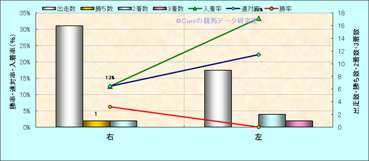 コース、最後の直線の高低差別成績(平地) |