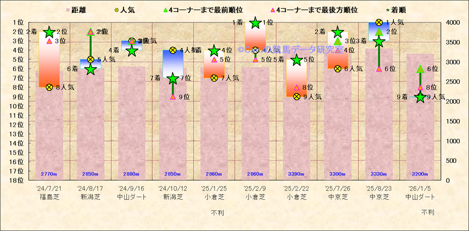 近10走 人気−着順-位置取りの推移 |