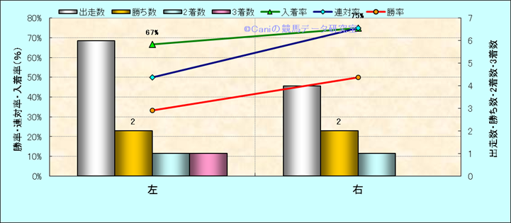 コース、最後の直線の高低差別成績(平地) |