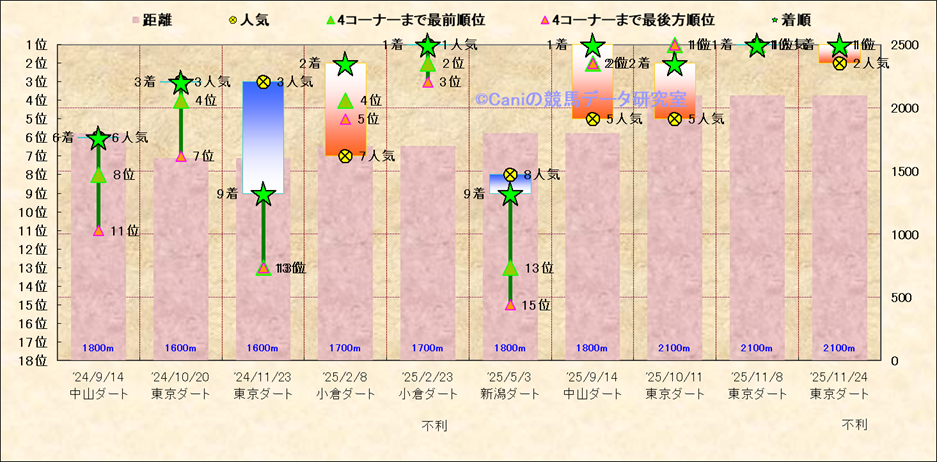 近10走 人気−着順-位置取りの推移 |