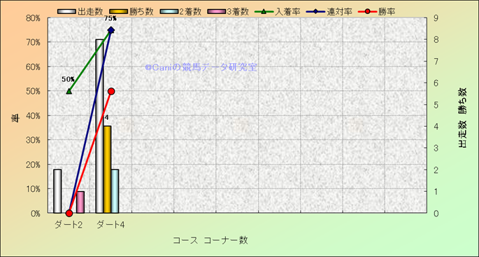 コース、コーナー数別成績(平地) |