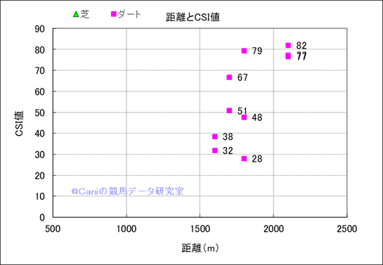 コース、最後の直線の長さ別成績(平地) |