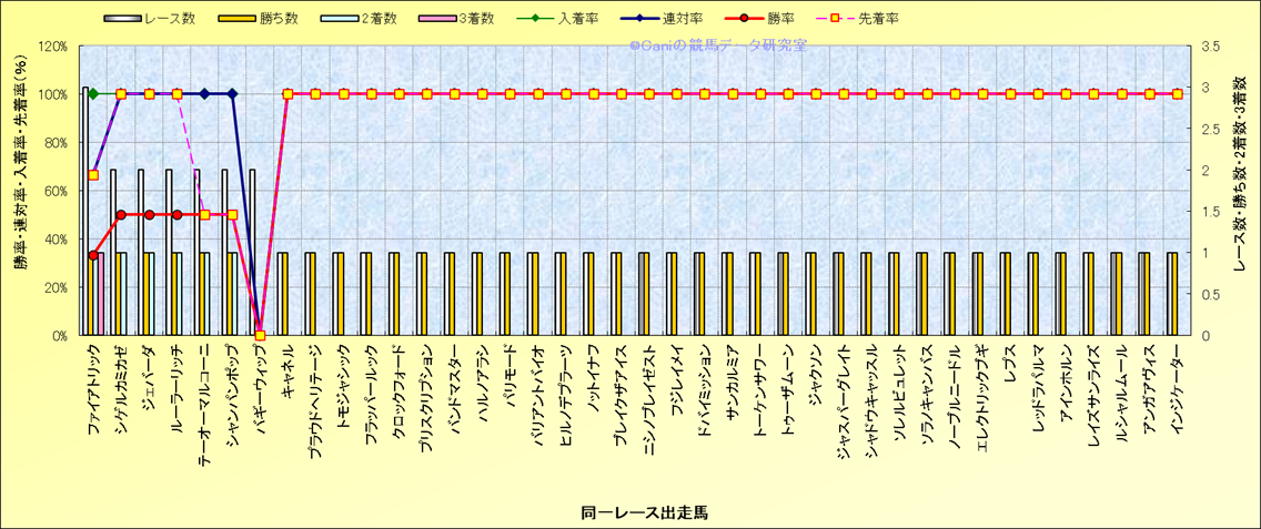 ライバル(相性)解析 同一レースに下記馬が出走した場合の成績とその馬に先着する先着率 |