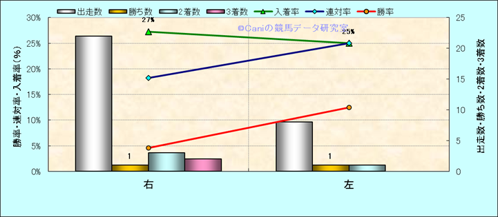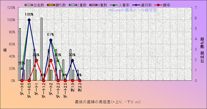 コース、最後の直線の高低差別成績(平地) |