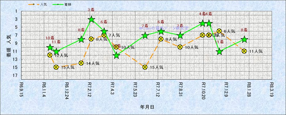 近10走 人気−着順-位置取りの推移 |