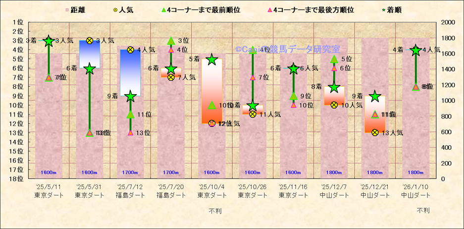 近10走 人気−着順-位置取りの推移 |