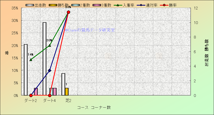 コース、コーナー数別成績(平地) |