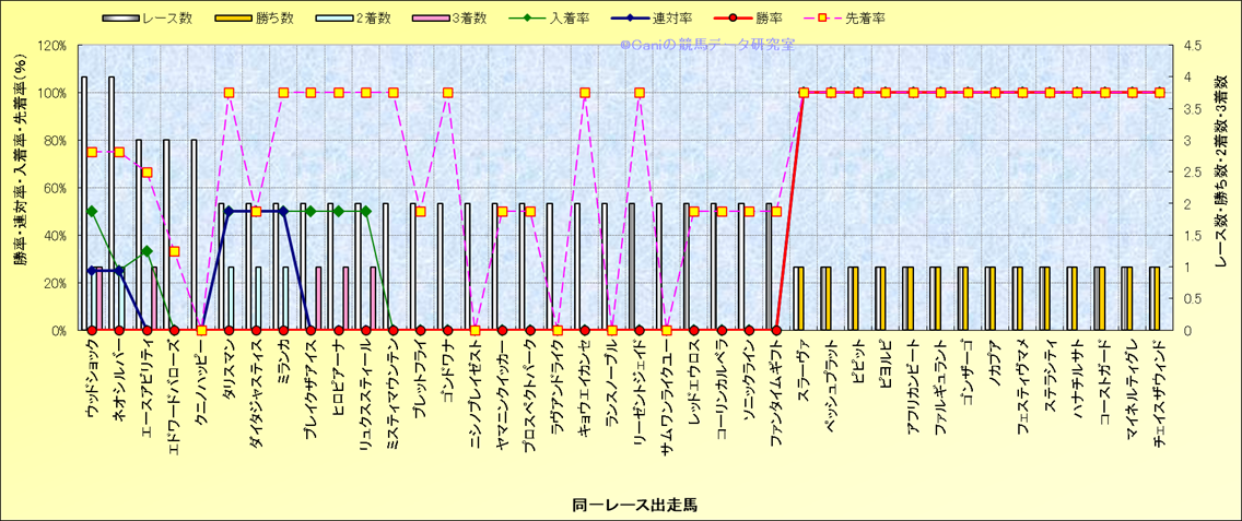 ライバル(相性)解析 同一レースに下記馬が出走した場合の成績とその馬に先着する先着率 |
