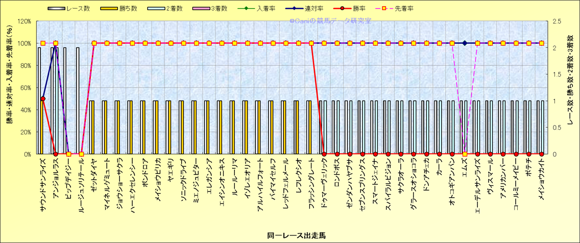 ライバル(相性)解析 同一レースに下記馬が出走した場合の成績とその馬に先着する先着率 |
