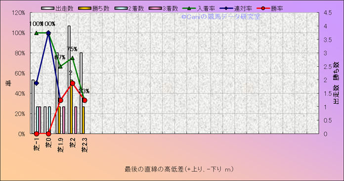 コース、最後の直線の高低差別成績(平地) |