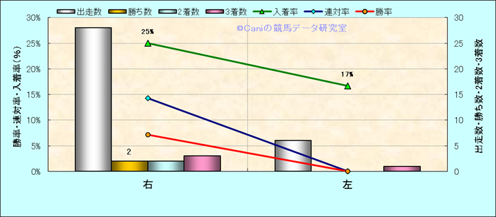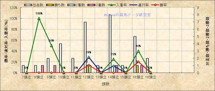 コース、最後の直線の高低差別成績(平地) |