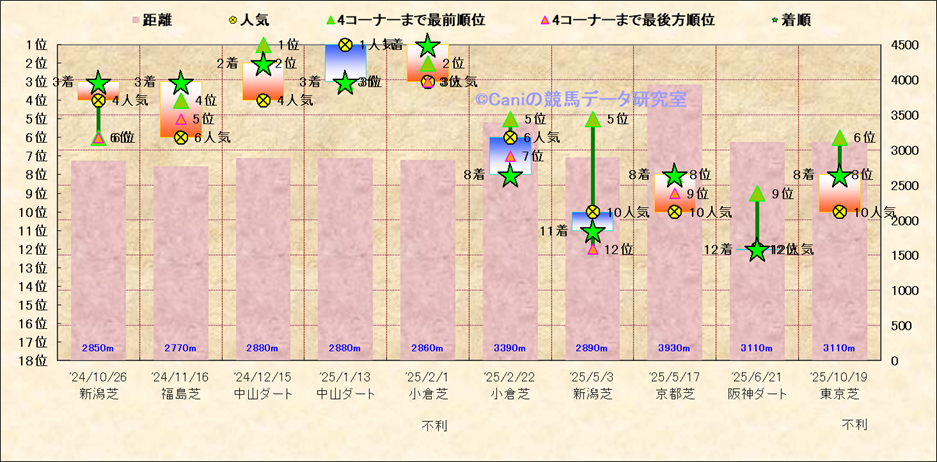近10走 人気−着順-位置取りの推移 |