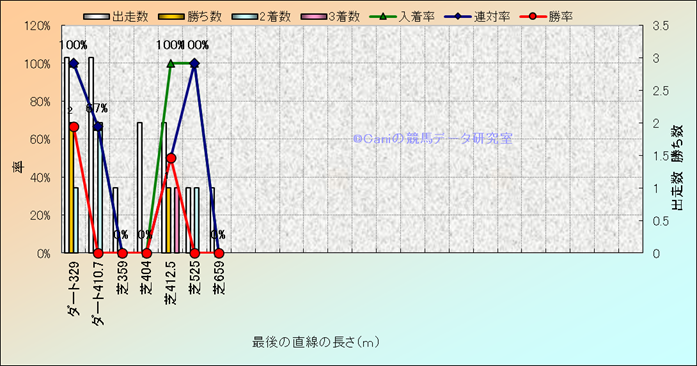コース、最後の直線の長さ別成績(平地) |