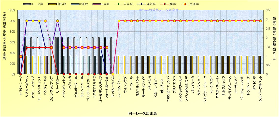 ライバル(相性)解析 同一レースに下記馬が出走した場合の成績とその馬に先着する先着率 |