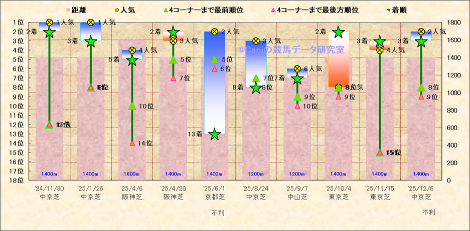 近10走 人気−着順-位置取りの推移 |