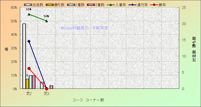 コース、コーナー数別成績(平地) |