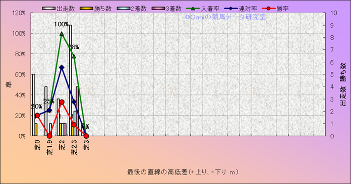 コース、最後の直線の高低差別成績(平地) |