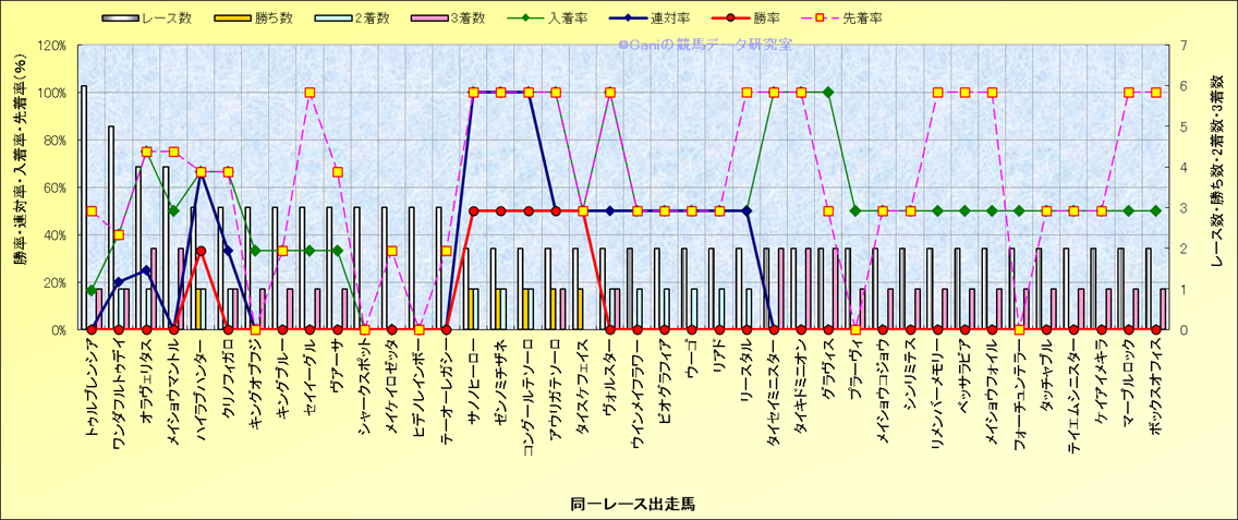 ライバル(相性)解析 同一レースに下記馬が出走した場合の成績とその馬に先着する先着率 |