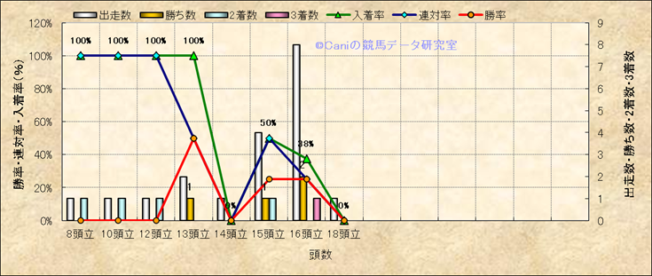 コース、最後の直線の高低差別成績(平地) |