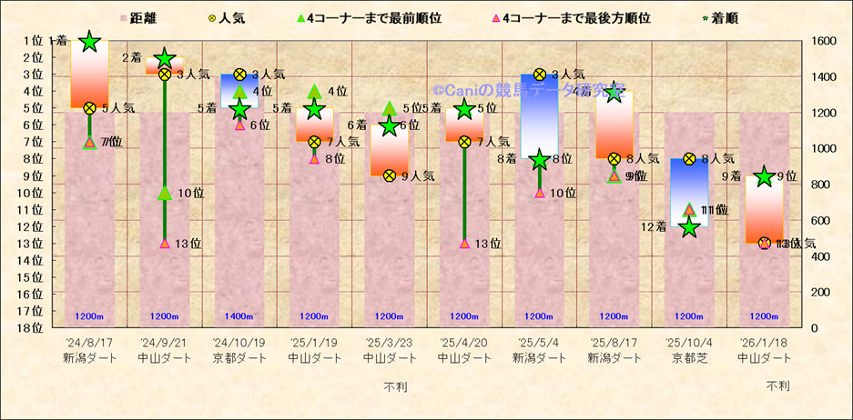 近10走 人気−着順-位置取りの推移 |