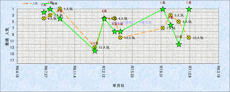 脚質解析 近20レースの4コーナーでの位置取りと上がり順位(頭数補正後) |