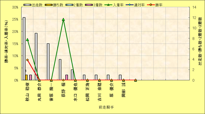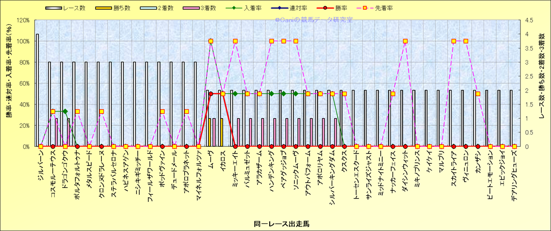 ライバル(相性)解析 同一レースに下記馬が出走した場合の成績とその馬に先着する先着率 |