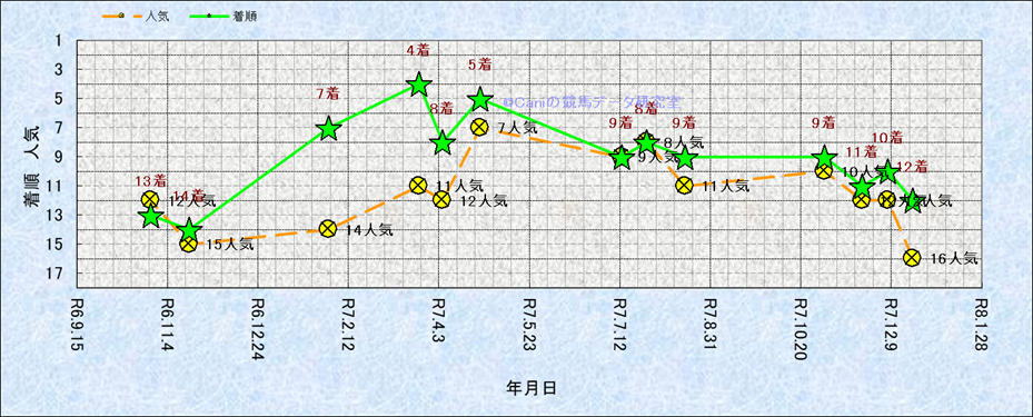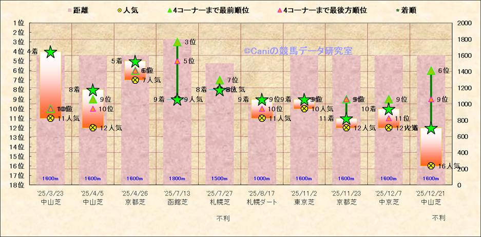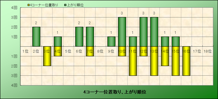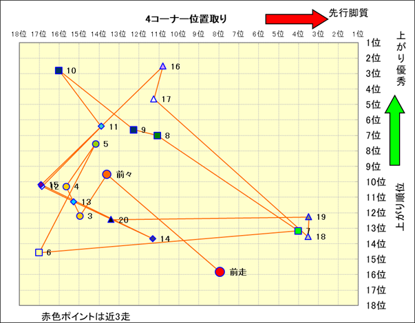脚質解析 近20レースの4コーナーでの位置取りと上がり順位(頭数補正後) |