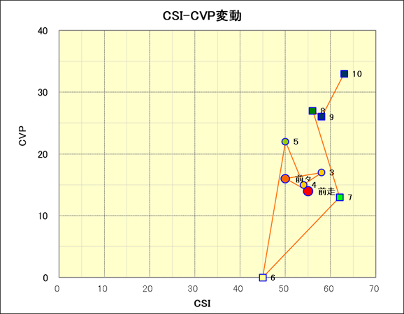 近走における4コーナーでの位置取りと上がり順位(頭数補正後) |