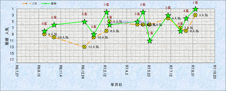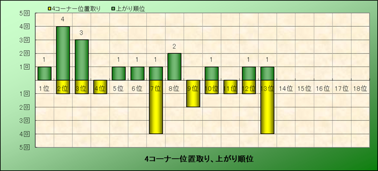 脚質解析 近20レースの4コーナーでの位置取りと上がり順位(頭数補正後) |