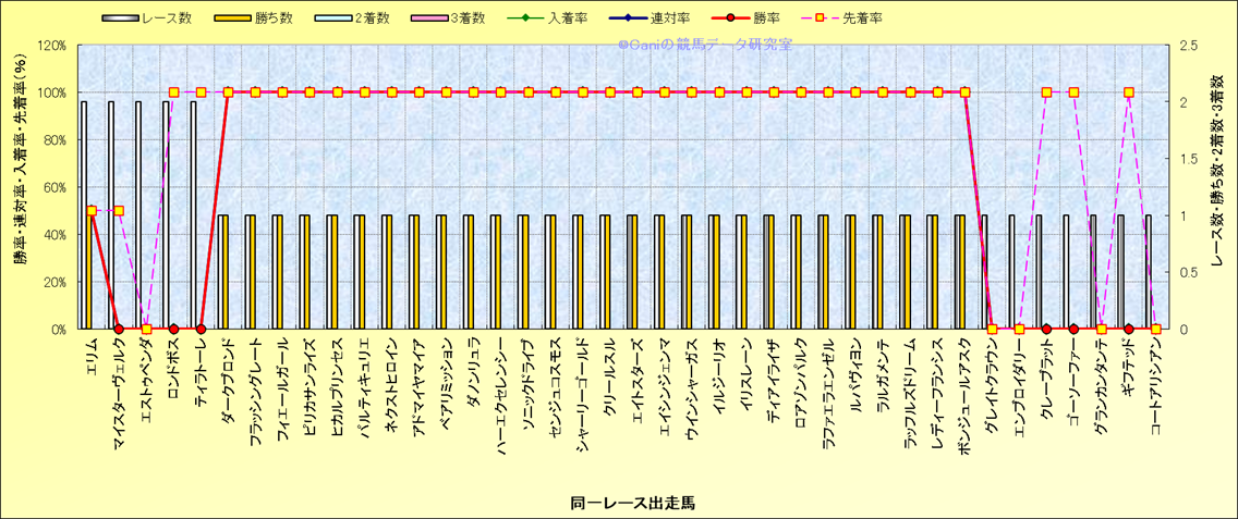 ライバル(相性)解析 同一レースに下記馬が出走した場合の成績とその馬に先着する先着率 |