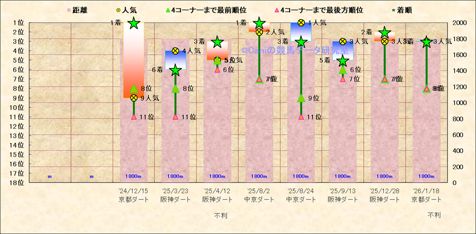 近10走 人気−着順-位置取りの推移 |