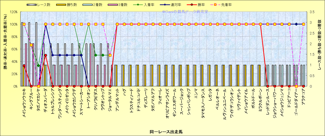 ライバル(相性)解析 同一レースに下記馬が出走した場合の成績とその馬に先着する先着率 |