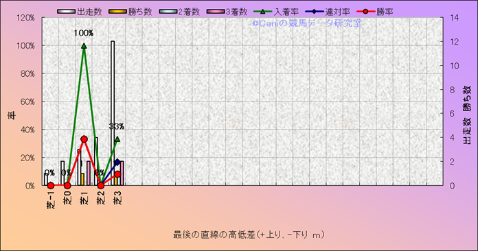 コース、最後の直線の高低差別成績(平地) |