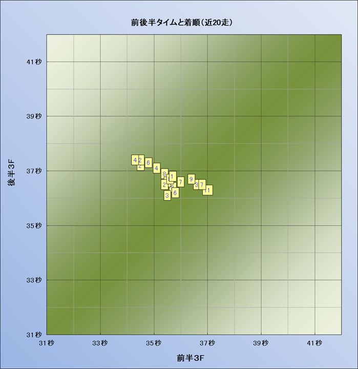脚質解析 近20レースの4コーナーでの位置取りと上がり順位(頭数補正後) |