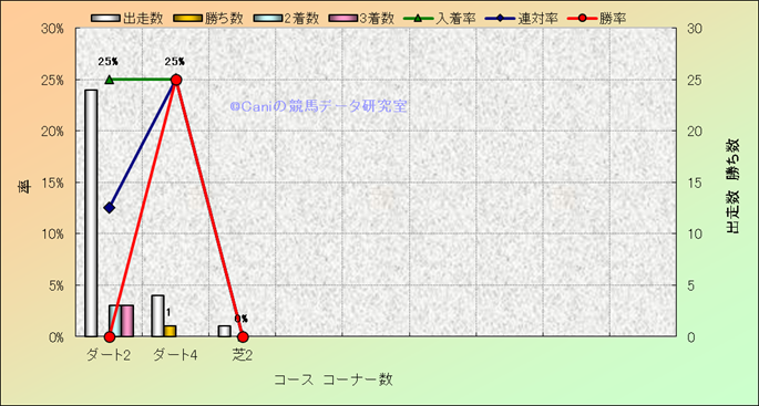 コース、コーナー数別成績(平地) |