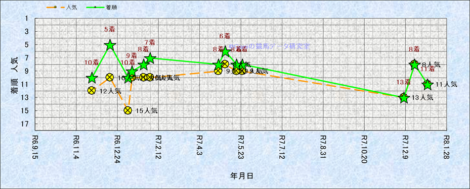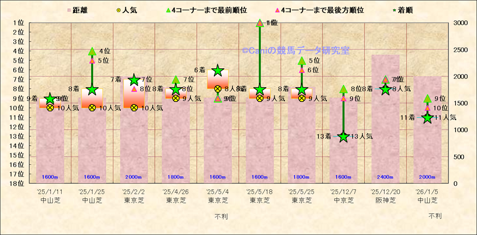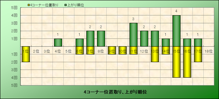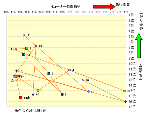 脚質解析 近20レースの4コーナーでの位置取りと上がり順位(頭数補正後) |