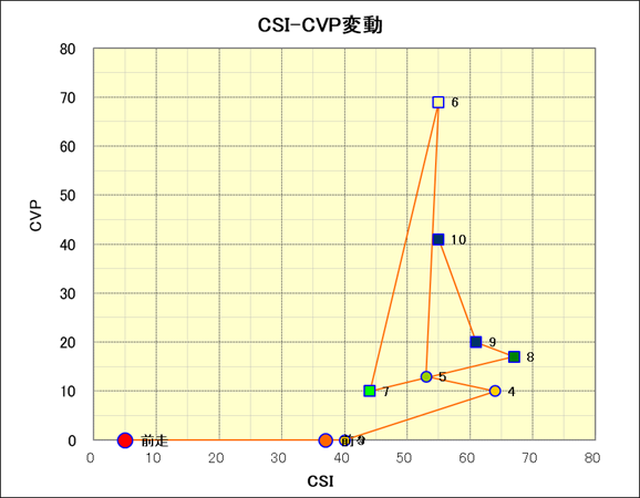 近走における4コーナーでの位置取りと上がり順位(頭数補正後) |