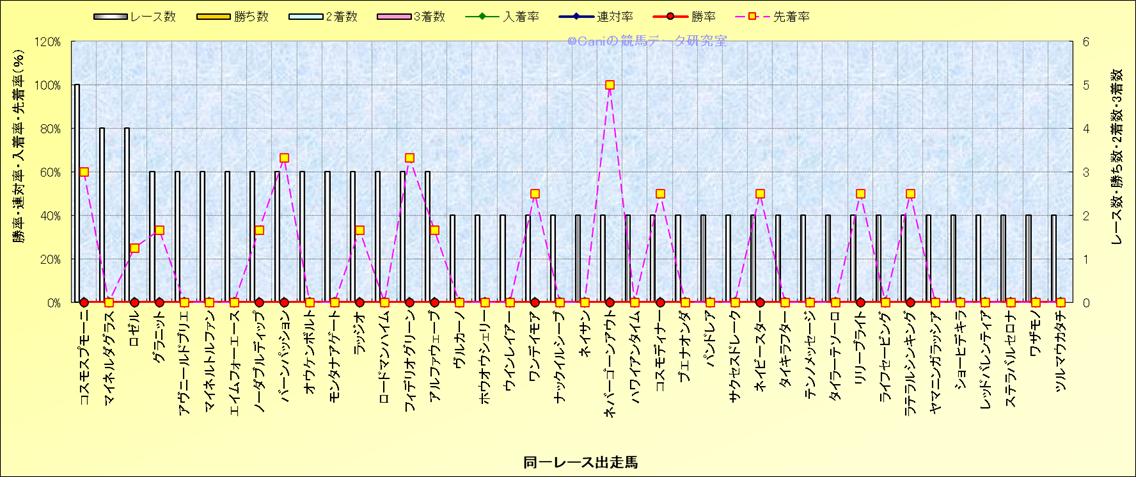 ライバル(相性)解析 同一レースに下記馬が出走した場合の成績とその馬に先着する先着率 |