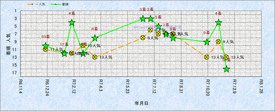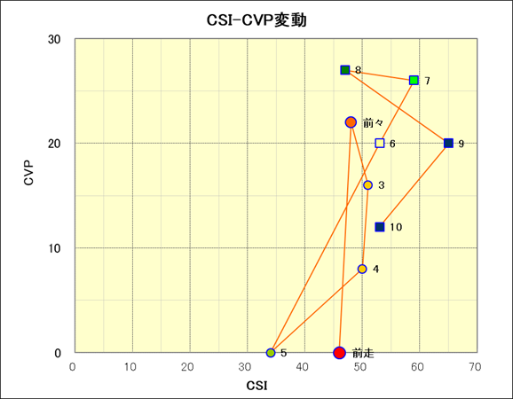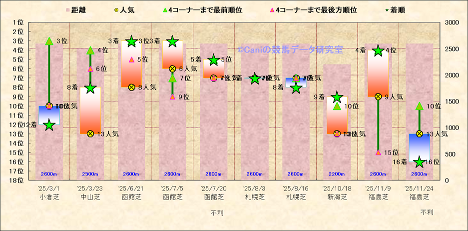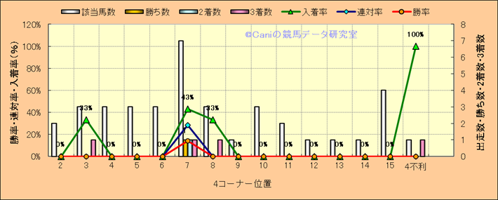 近走における4コーナーでの位置取りと上がり順位(頭数補正後) |