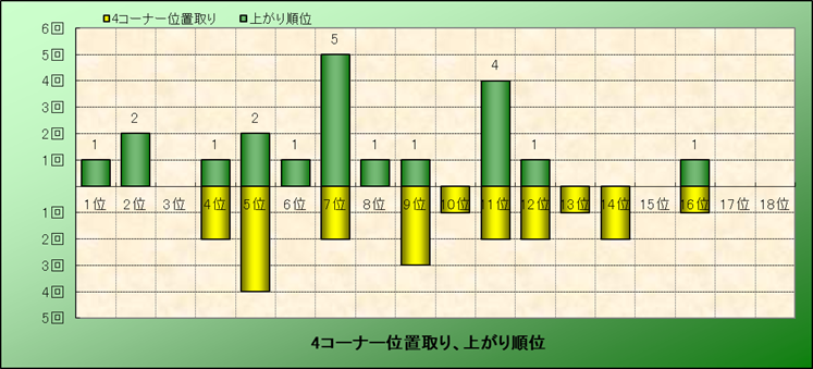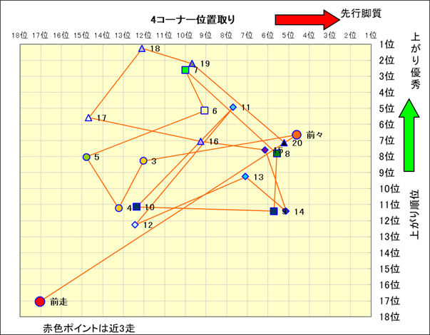 脚質解析 近20レースの4コーナーでの位置取りと上がり順位(頭数補正後) |